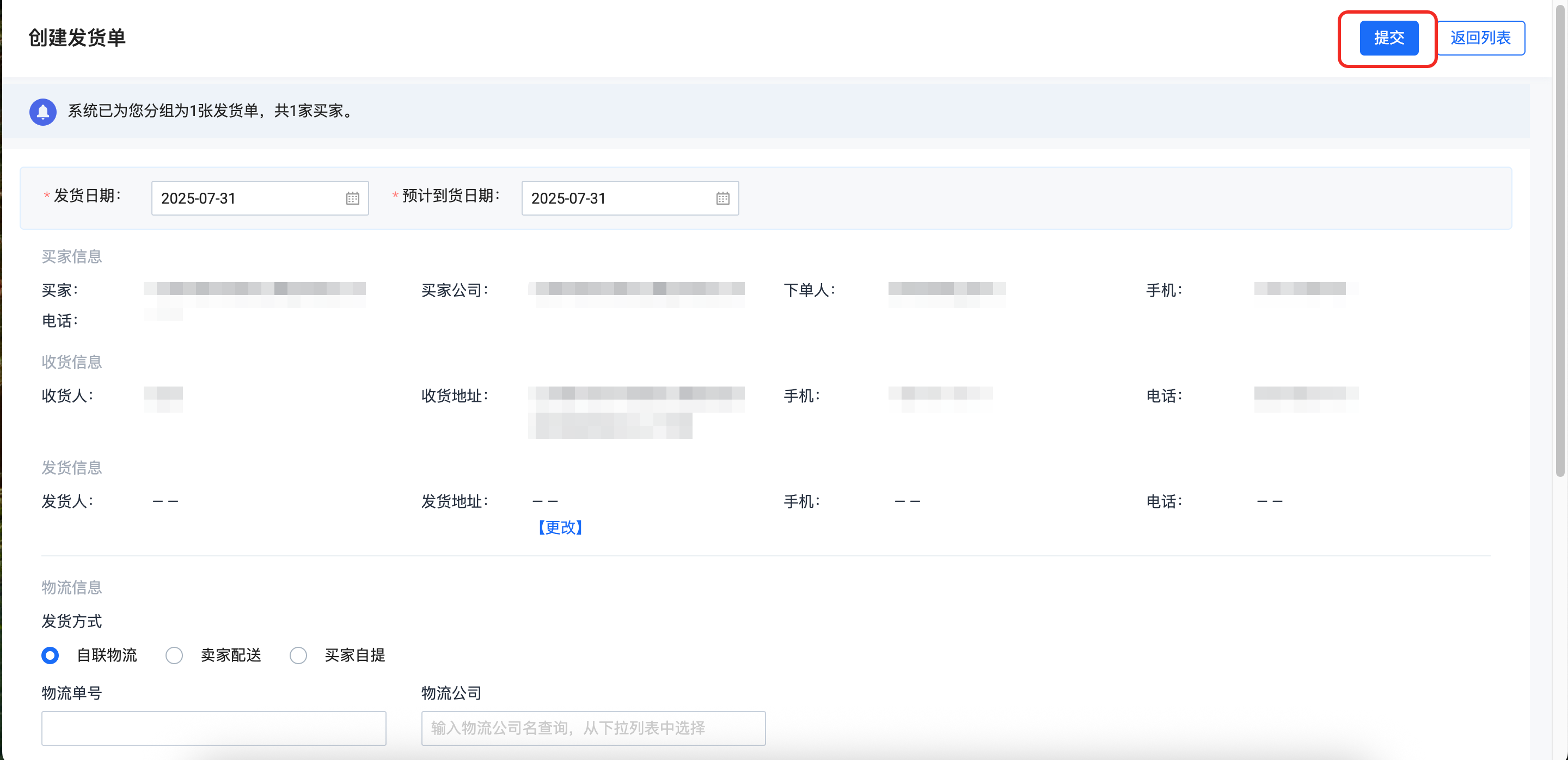 2、创建发货单